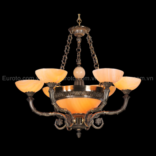 Đèn chùm đồng chao đá tự nhiên CD-187/6